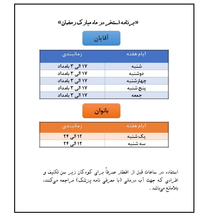 • زمانبندی استخر فجر - ماه رمضان 98